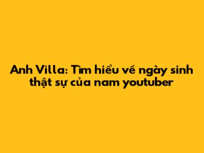 Anh Villa: Tìm Hiểu Về Ngày Sinh Thật Sự Của Nam Youtuber