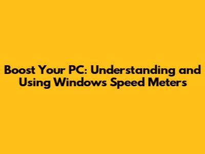 Boost Your PC: Understanding And Using Windows Speed Meters