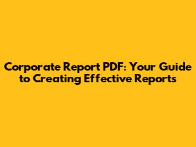 Corporate Report PDF: Your Guide To Creating Effective Reports