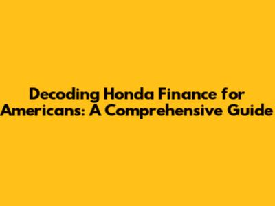 Decoding Honda Finance For Americans: A Comprehensive Guide