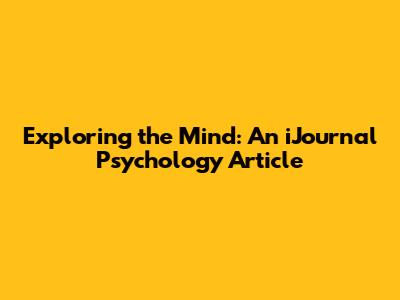 Exploring The Mind: An IJournal Psychology Article