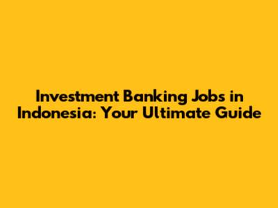 Investment Banking Jobs In Indonesia: Your Ultimate Guide