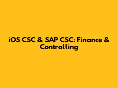 IOS CSC & SAP CSC: Finance & Controlling