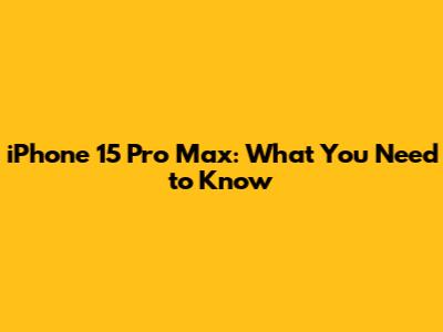 IPhone 15 Pro Max: What You Need To Know