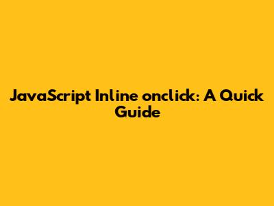 JavaScript Inline Onclick: A Quick Guide