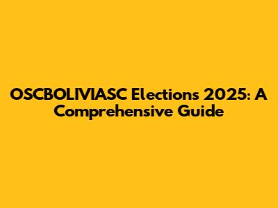 OSCBOLIVIASC Elections 2025: What You Need To Know
