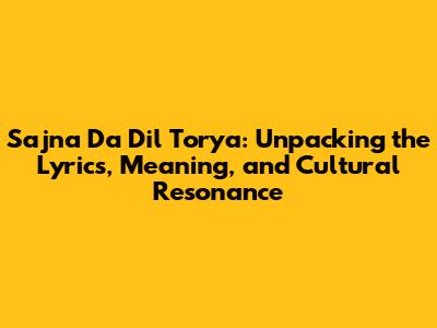 Sajna Da Dil Torya: Lyrics, Meaning & Cultural Impact