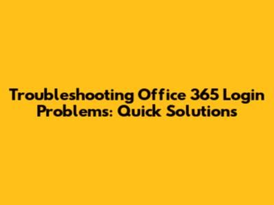Troubleshooting Office 365 Login Problems: Quick Solutions
