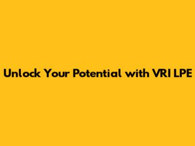 Unlock Your Potential with VRI LPE