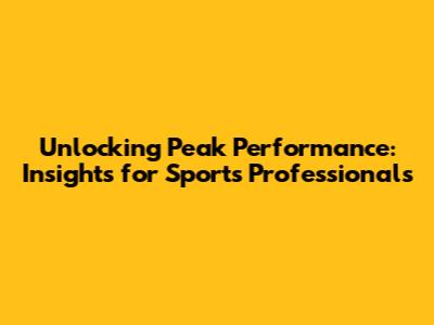 Unlocking Peak Performance: Insights For Sports Professionals